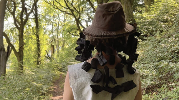 image: still from Beech Wood Pieces. Performance to camera. 16:9 duration 20:00