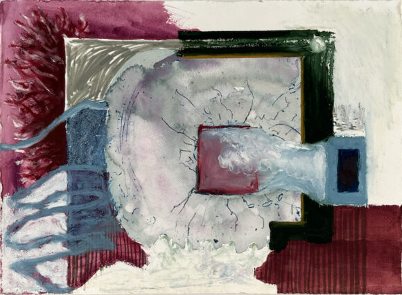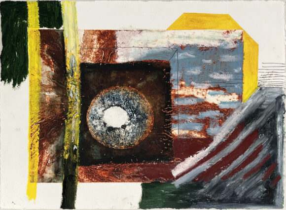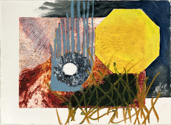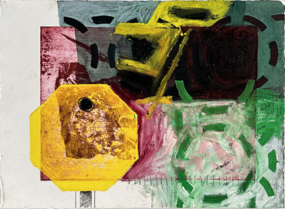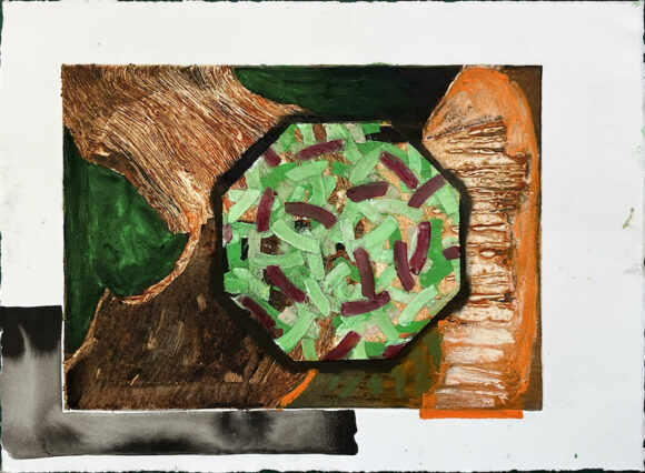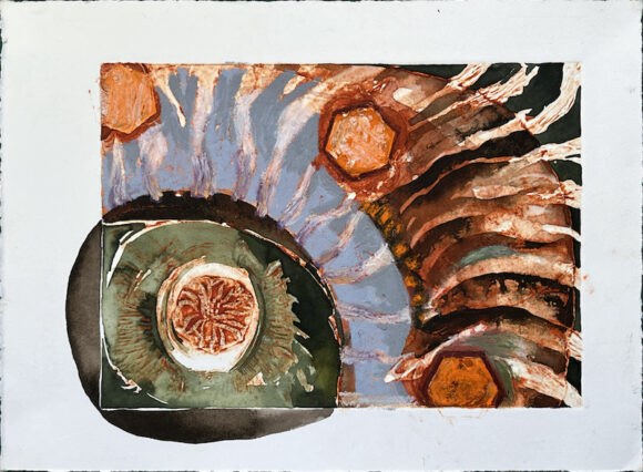 Oil bar, acrylic ink, pencil, gouache over collagraph on paper (39 x 29 cms) Drawings 1-12: 2024. Drawings 13-20: 2025